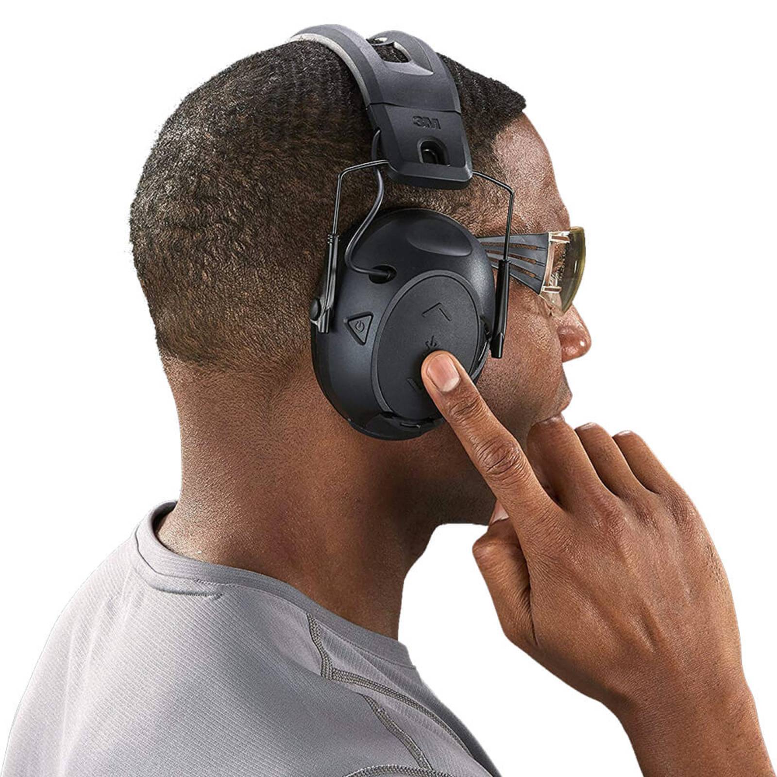 Peltor Sport Tactical Electronic Hearing Protector earmuffs have low-profile cups for rifle/shotgun use to suppress gunshot noise and amplify low sounds using proprietary 3M SMART technologies, and have an auto shut-off feature. Gunshot Recognition and Suppression Technology optimizes noise protection based on the firearm being used and the environment in which it's being used. Clear Voice Tracking Technology seeks voice within background noise to improve speech intelligibility and situational awareness.