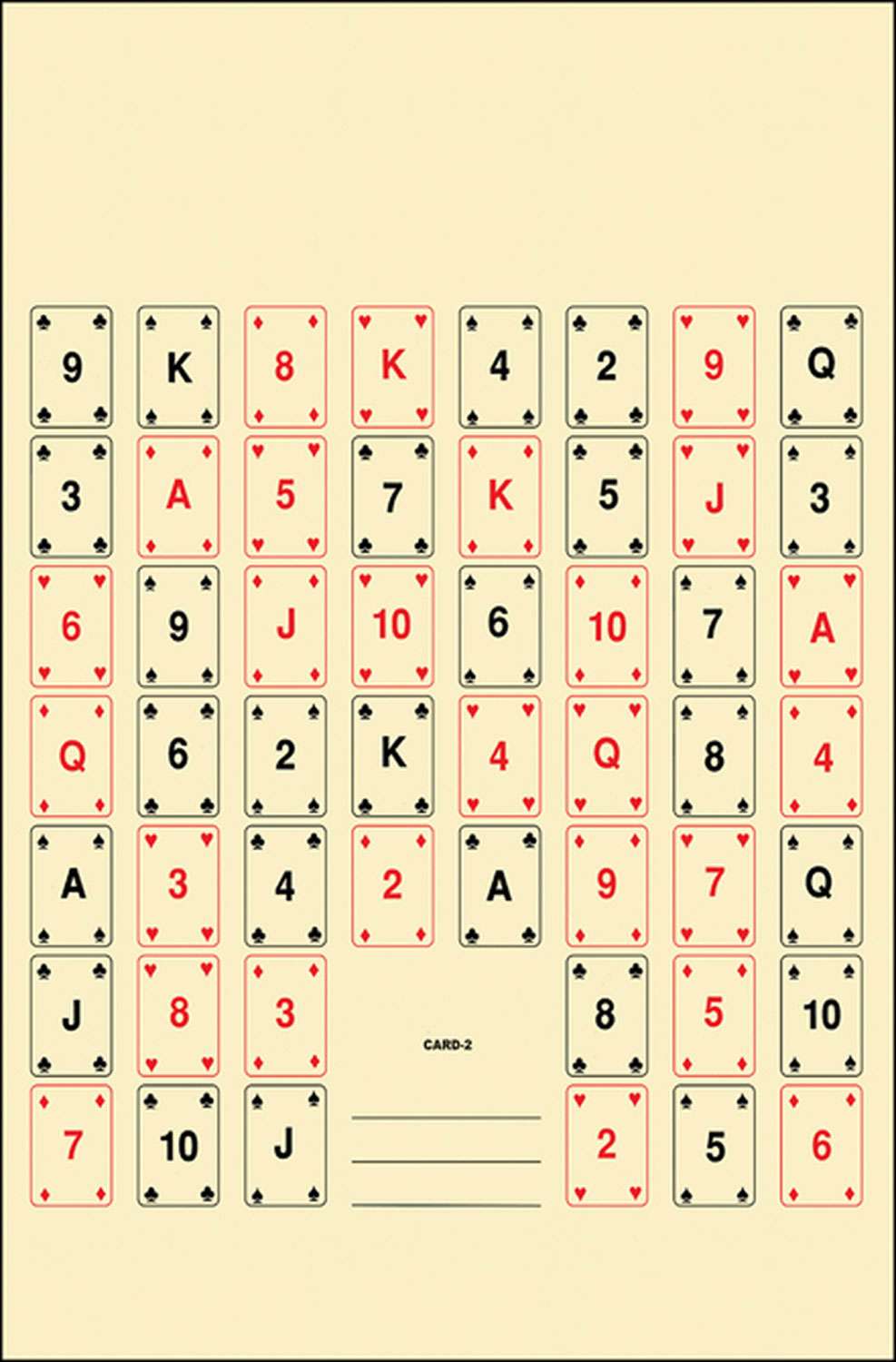 This playing card target offers a complete set of 52 playing cards arranged in a different layout from Card-1 Target. This card features the colors black & red and has dimensions of 22.5" x 24".