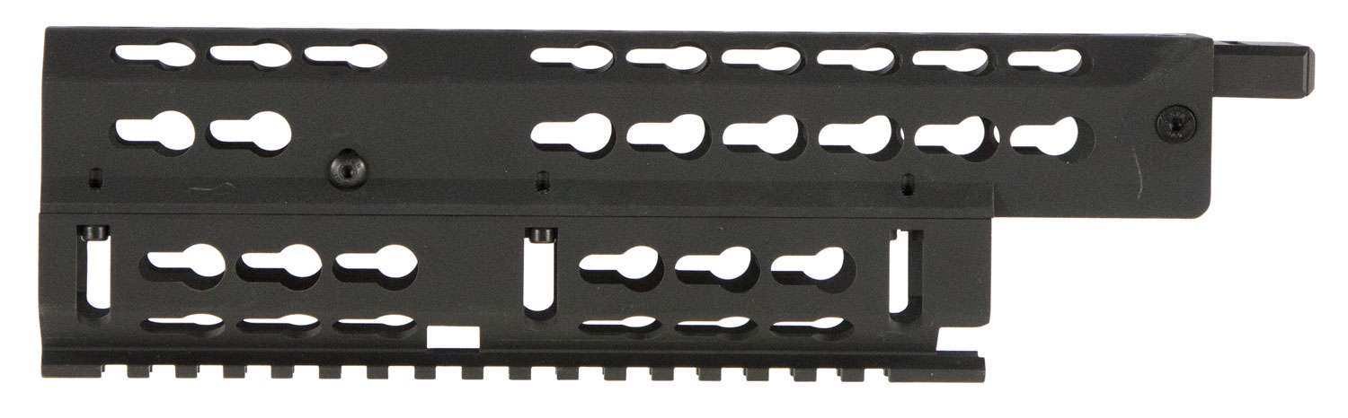 Aim Sports Russian AK-47 KeyMod handguard is a 2-Piece drop-in style design. It is machined from 6061 aluminum with anodized finish for hard use and features a Picatinny 1913 top rail with a grenade sight cut out. The handguard mounts with unique barrel clamps and receiver clamps and has 9 KeyMod rows for ultimate modularity.