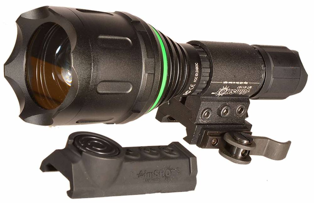 The revolutionary TZ980 is a unique flashlight designed by AimSHOT from the ground up as a weapon mounted adjustable focus light for hunting and tactical use. It is the only adjustable beam light on the market that is waterproof, recoil proof, and has a fully adjustable output from 5-100% output using the wireless rail mounted pressure switch. At the widest angle, you can see approximately 40' wide at 100'. As you turn the bezel to zoom in the beam pattern, the light output is condensed into a 10' wide cone of light. Use the wide angle to find your prey, then zoom in to identify and track your target. Using the adjustable wireless pressure switch it gives the operator total control in any situation giving the ability to adjust the beam to match the field of view of magnified optics for varmint hunting and other night time use. This kit comes with the TZ980 flashlight, two (2) CR123A batteries, wireless remote, carrying pouch, a picatinny flashlight mount and a low profile quick release picatinny rail mount.