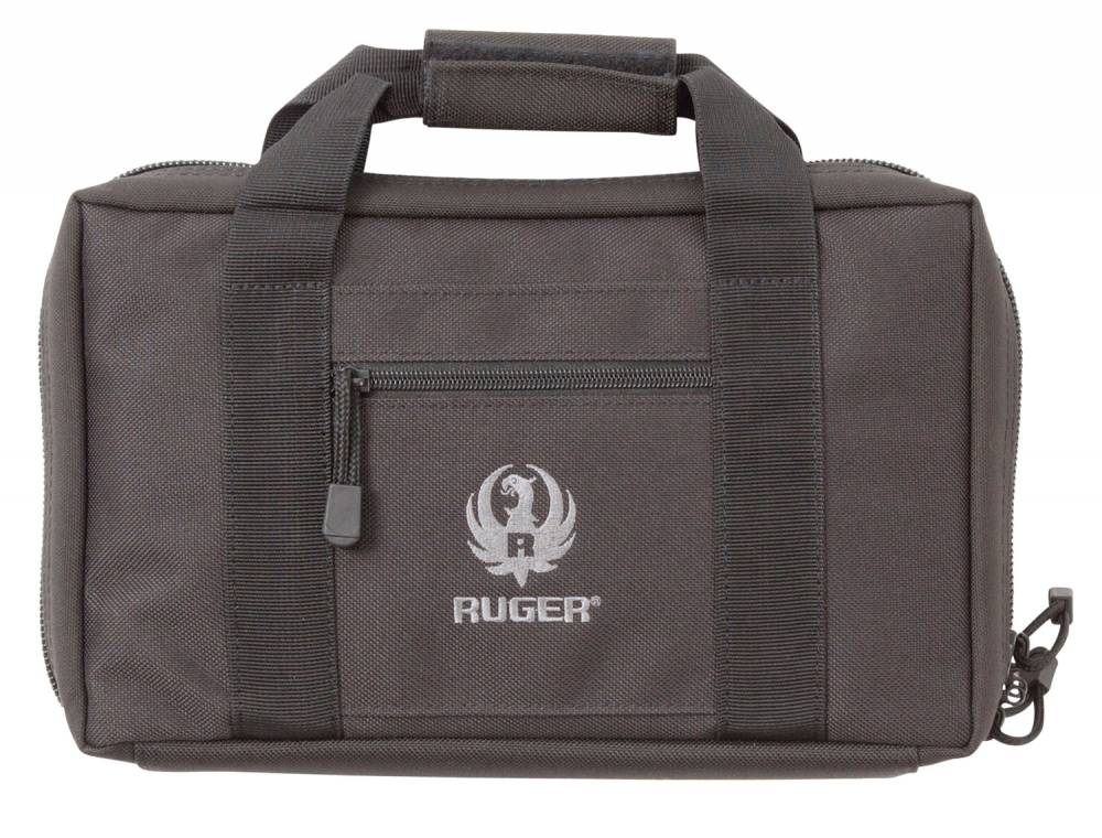 The Ruger Double Handgun Case features two internal handgun compartments, internal magazine holders, and an external MOLLE system. The case has extra-rugged Endura fabric construction with a hook and loop closure carry handle. Internal dimensions: 12.5" wide x 8" high.