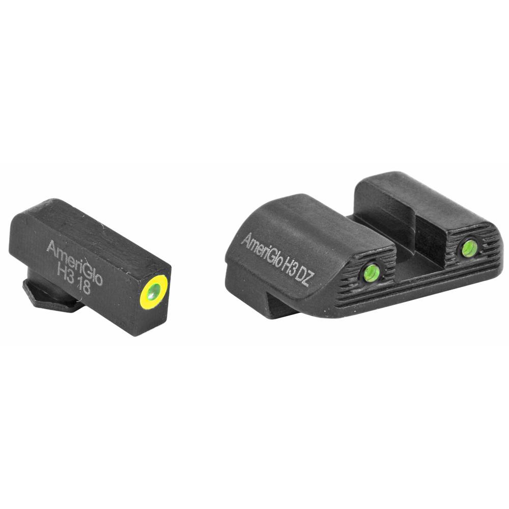 AmeriGlo Trooper, Sight, Fits Glock 42,43,43X, Green Tritium LumiLime Outline Front, Green Tritium Black Serrated Rear, Front/Rear GL-822