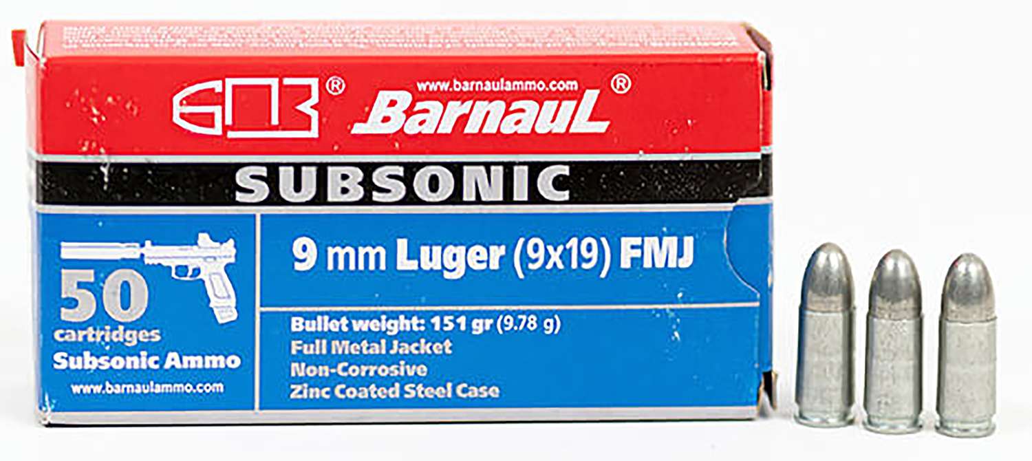 Barnaul Ammunition 9MM, 151Gr, Full Metal Jacket, Subsonic, 50 Round Box BRN9mmLugerZNFMJ151SUB