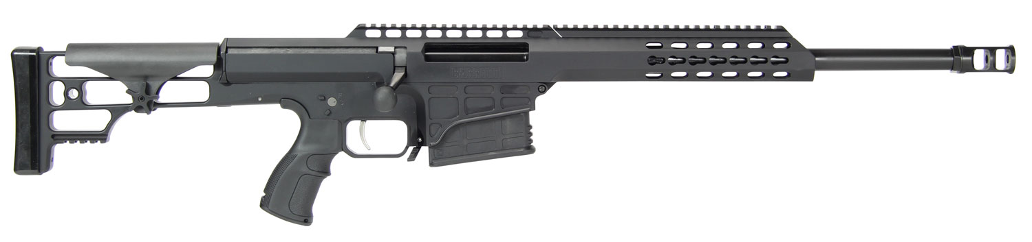 This revolutionary precision rifle offers sub MOA long-range performance that others can only dream about. Its straight-line design allows for faster, running from the highly efficient muzzle brake to the shooter's shoulder, tames recoil. It also allows for faster, more accurate follow-up shots fed from the 10-round detachable magazine. The ergonomic pistol grip reduces muscle fatigue and provides total control over the fully adjustable trigger. An intuitive, thumb-operated safety can be accessed without compromising the firing grip and allows the shooter to maintain a solid weld to the adjustable cheek piece. The oversized bolt handle can be easily manipulated, feeding a new round into the chamber as the bolt glides through a polymer guide.