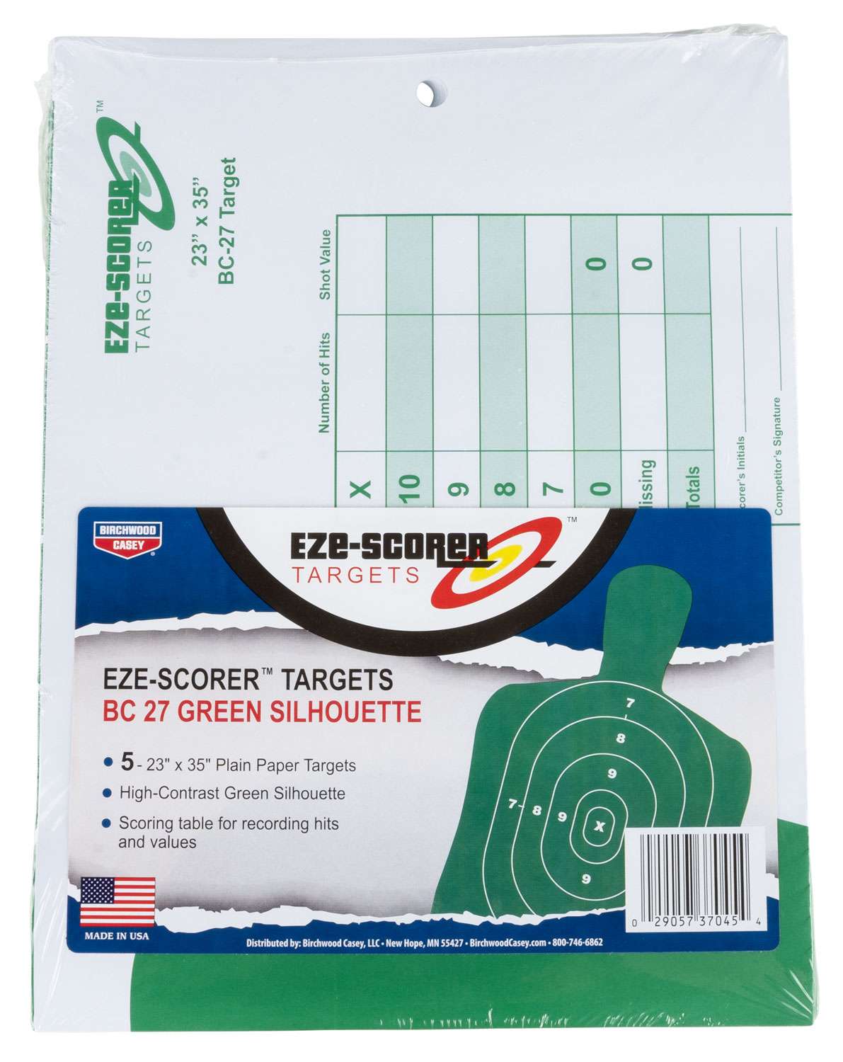 This Birchwood EZE-Scorer target is for use with any caliber firearm. It is features a high contrast green silhouette on plain paper and a scoring tale for recording hits and values.