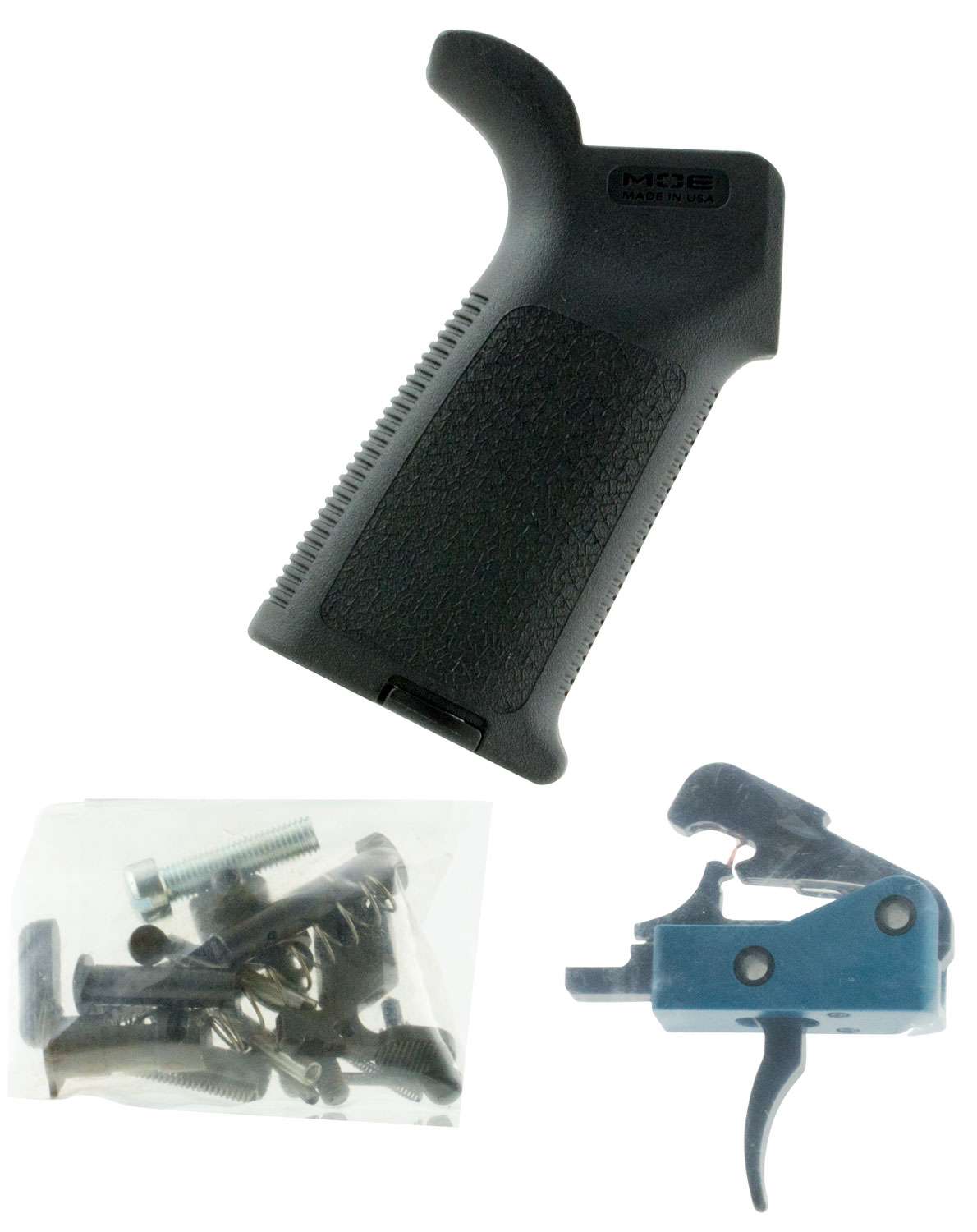 Black Rain's Lower Parts Kit includes a buffer retainer and spring, selector, bolt catch spring/retainer/catch/and roll pin, mag catch, two (2) of each takedown pivot pin springs and detents, mag catch spring, mag button, pivot pin, grip screw, star washer, selector detent spring and detent, takedown pin, colored anti-rotation pins, and a Magpul MOE pistol grip.