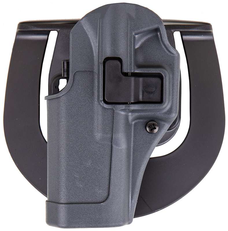 Blackhawk's Serpa Sportster Holster is designed for civilian concealed carry or range use. Constructed of injection molded polymer for long-lasting durability with the patented Auto-Lock technology. Features- passive retention detent adjustment screw; speed-cut design for rapid draw, target acquisition and re-holster; paddle platform and the "L" shaped button which is optimized for security and performance. Fits Shoulder, S.T.R.I.K.E., Quick Disconnect and Tactical Holster Platforms. Gunmetal gray holster body with black locking mechanism. Made in the USA.