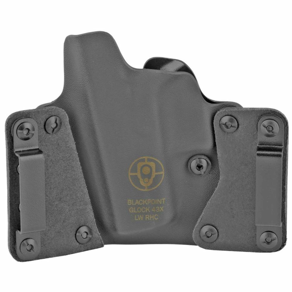 BlackPoint Tactical Leather Wing OWB Holster, Fits Glock 43X, Right Hand, Black Kydex & Leather, 1.75" Belt Loops, 15 Degree Cant 115996