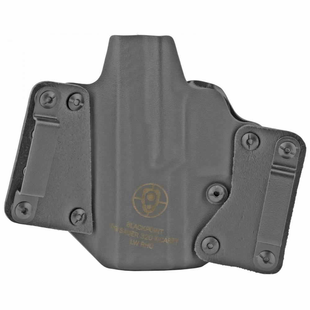 BlackPoint Tactical Leather Wing OWB Holster, Fits Sig P320 X-Carry, Right Hand, Black Kydex & Leather, 1.75" Belt Loops, 15 Degree Cant 119503