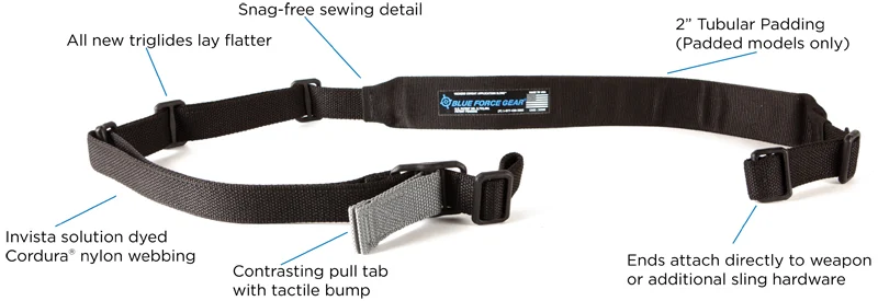 While 2-point slings are ideal for most situations, there are times, like deploying from a vehicle or fighting in complex structures, when a 1-point sling has a clear advantage. Combining Blue Force Gear's new polymer Burnsed Socket and patented RED Swivel, the Vickers 221 Sling allows users to switch from 2-point to 1-point mode instantly by pulling on the RED Swivel knob and reinserting it in to the Burnsed Socket at the rear of the receiver. The instantaneous adjustability of the sling is still maintained in both 1 and 2 point modes. Constructed similar to the world's standard Vickers Combat Applications Sling, a RED Swivel is sewn to the front of the sling towards the muzzle. A standard push button swivel and new molded Burnsed Socket are woven onto the rear allowing full adjustability of the sling for use with or without body armor. The 221 Sling fits any weapon with two QD sling swivel sockets with the rear socket towards the end of the receiver. For SCARS, Sigs, HKs, or other weapon systems with eyelets at the rear of the receiver, a Universal Wire Loop with Push Button Socket can be added instead of the included push button socket.