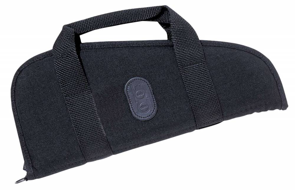 Bob Allen's Bison Pistol Rug is constructed of canvas with foam padding, twill lining, and wraparound handles. This 13" model has a black finish.