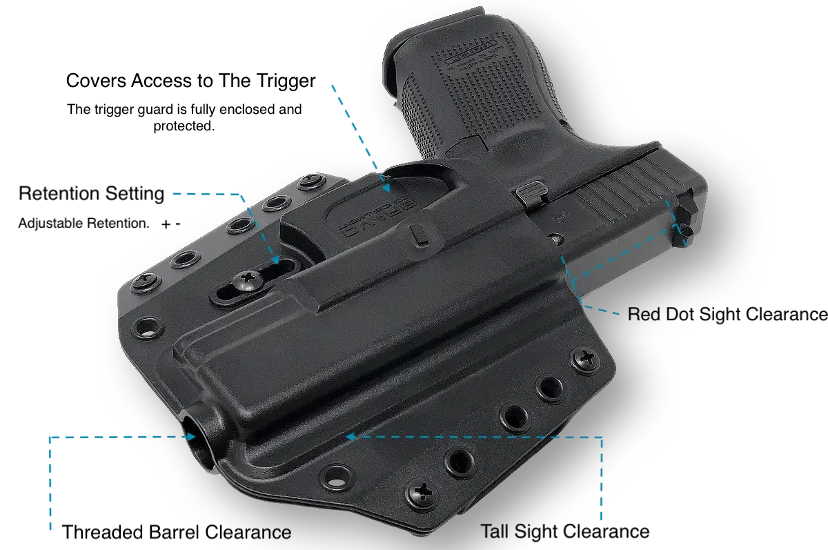 The Bravo Concealment Adaptive (BCA) OWB concealed carry holster is designed to be the best outside the waistband option for everyday concealed carry. Their outside the waistband (OWB) holster fits your gun perfectly. This is because they design their molds in-house with the latest CAD design. They 3-D scan the actual gun and build a solid off the cloud for the most precise fit within three-thousandths of an inch. Whether you open carry or conceal carry” the BCA OWB holster rides high and close to the body for maximum concealment while perfectly fitting your gun. They also have a slight curve to help wrap around the natural curvature of your waistline. Bravo holsters have a very smooth pocket for a quick and pronounced” audible “click” when reholstering. Since the holsters are made specifically for your gun” it keeps it locked and tight with no movement when wearing your gun. This keeps the finish of your gun in very good condition.