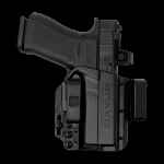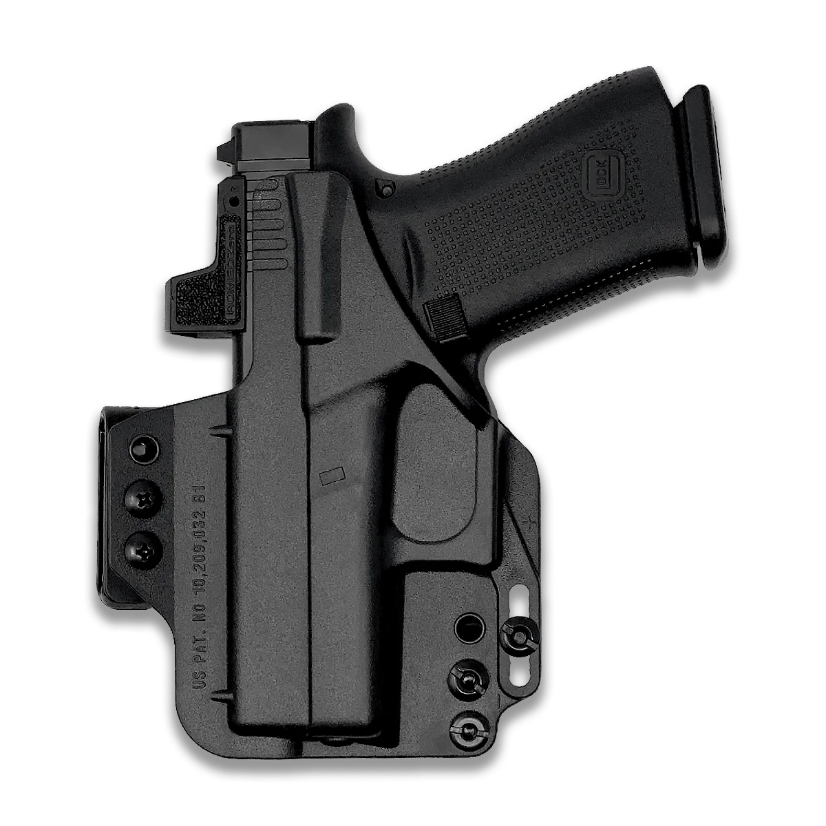 Rounded edges aid in all-day comfort. A positive click when holstering helps confirm the pistol is locked in place. The IWB Torsion Holster allows you to tuck in your shirt over the gun holster for a formal way to carry. You can achieve this by converting your gun holster into the Single Belt Clip configuration.