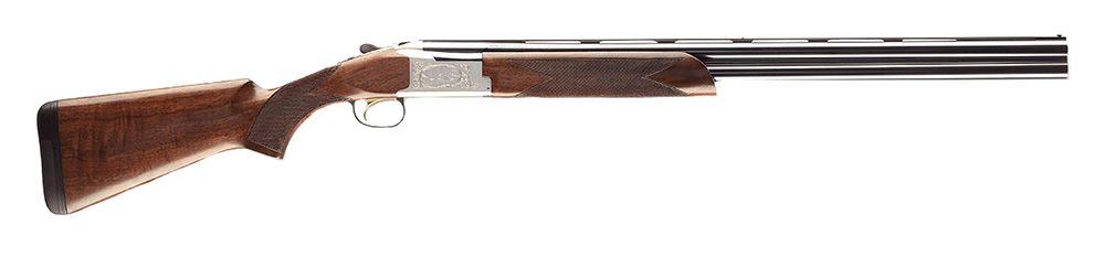Browning's Citori is more than a shotgun, it is the quintessential representative of the quality of the Browning brand. The action components are machined to exacting tolerances, heat-treated for greater strength and fitted using the traditional lampblack-and-file method to ensure precise fitting. It utilizes a transverse-mounted, full-width tapered locking bolt, which engages a full-width tapered recess in the rear barrel lugs. The Citori also has a chrome-plated chamber. The Citori 725 is the evolution of John M. Browning's legendary B25 Superposed, but with the modern performance advantage of a low-profile receiver. The receiver is significantly lower than other Citori 12 gauge receivers, yet it shares the renowned durability of generations of Citori over and unders with the same rugged full-width hinge pin and tapered locking bolt design. The total barrel dynamics increases bore diameter specifications, while the tapered Vector Pro dimensions minimize shot deformation. The Citori 725 also has a Fire Lite Mechanical trigger, Inflex II technology, and hinge pin which extend the full width of the receiver for maximum strength. This Feather 12 gauge model has a 28" barrel, aluminum alloy receiver, and black walnut stock.