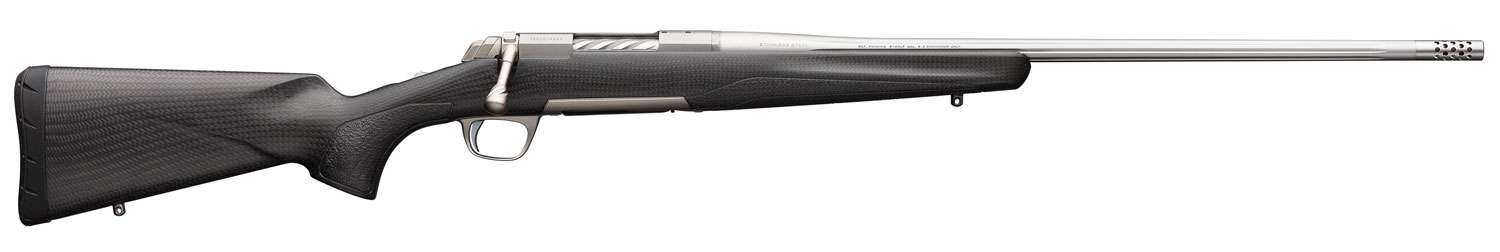The X-Bolt builds on past Browning rifles, and adds numerous improvements that place the X-Bolt at the top. The X-Bolt's new three-lever Feather Trigger provides a clean, crisp pull with no take-up or creep and minimal overtravel. The X-Bolt is free-floated by bedding the front and rear of the action for stability and to help maintain barrel to stock spacing for consistent accuracy. A recessed muzzle crown helps protect the rifling from damage. The Inflex 1 recoil pad has proprietary construction and material to promote a directional deflection of recoil forces, pulling the stock comb away from your face to reduce felt recoil and muzzle climb. The bolt unlock button works in conjunction with the top-tang safety to provide an added measure of safety during checking and unloading of the chamber. The X-Bolt Pro Stainless features a matte black 2 Gen Carbon fiber stock offering superior stiffness and durability, satin silver stainless barreled action for high corrosion resistance, ergonomic bolt handle, spiral fluted bolt handle and a fluted barrel. Includes a muzzle brake and thread protector.