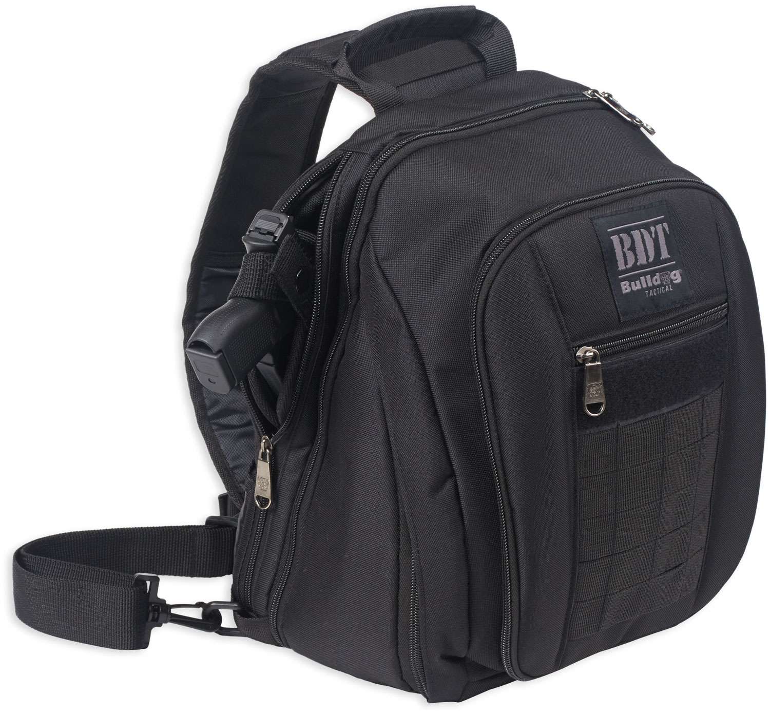 Bulldog's Small Sling Pack has deluxe all metal zippers and zipper pulls. Its main padded compartment is ideal for mini or regular sized tables, and can hold accessories and magazines. It also has a padded shoulder sling and an included universal holster.
