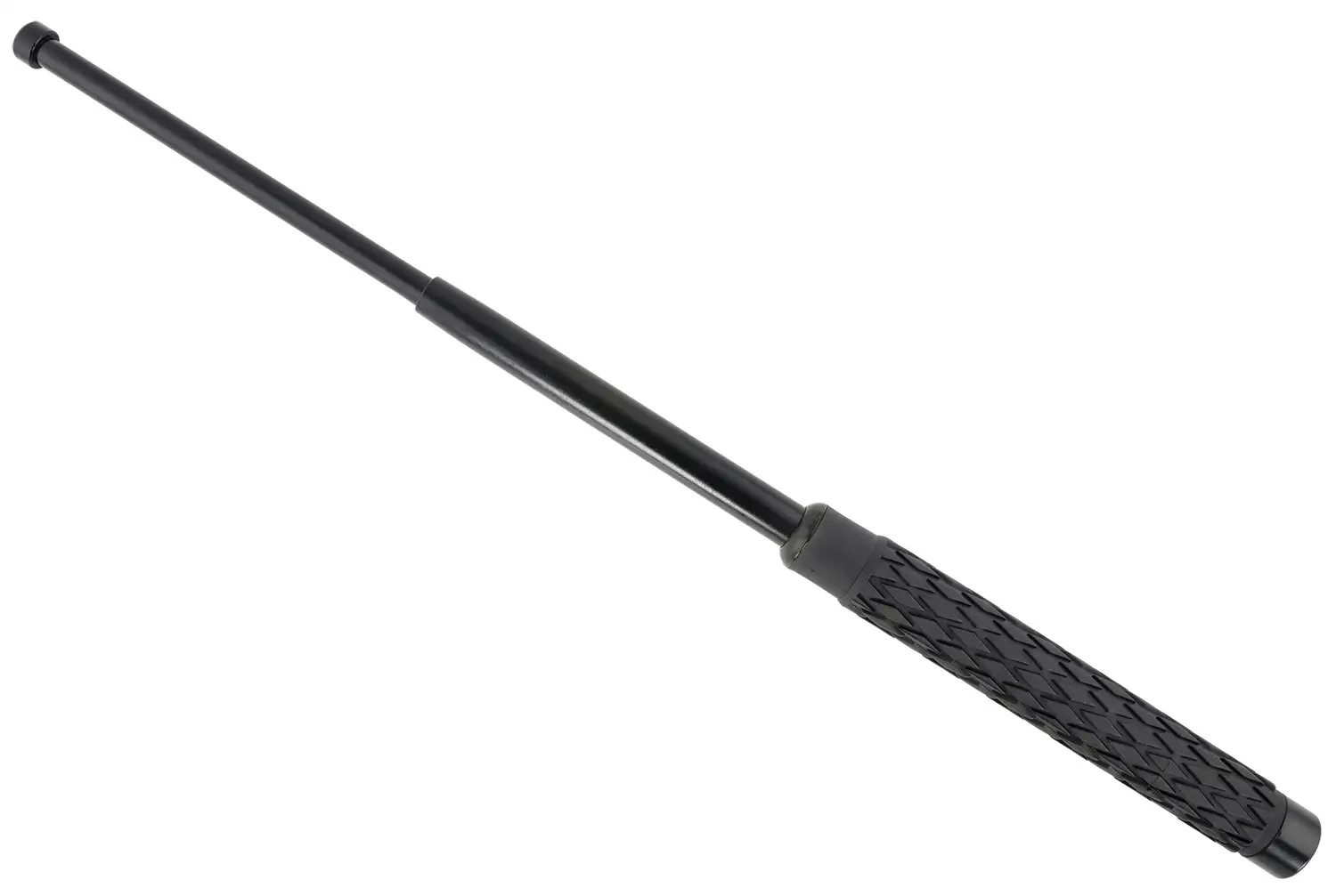 This Civilian Protection Issue Baton expands to 21". This steel baton has a textured grip and comes with a nylon holster.