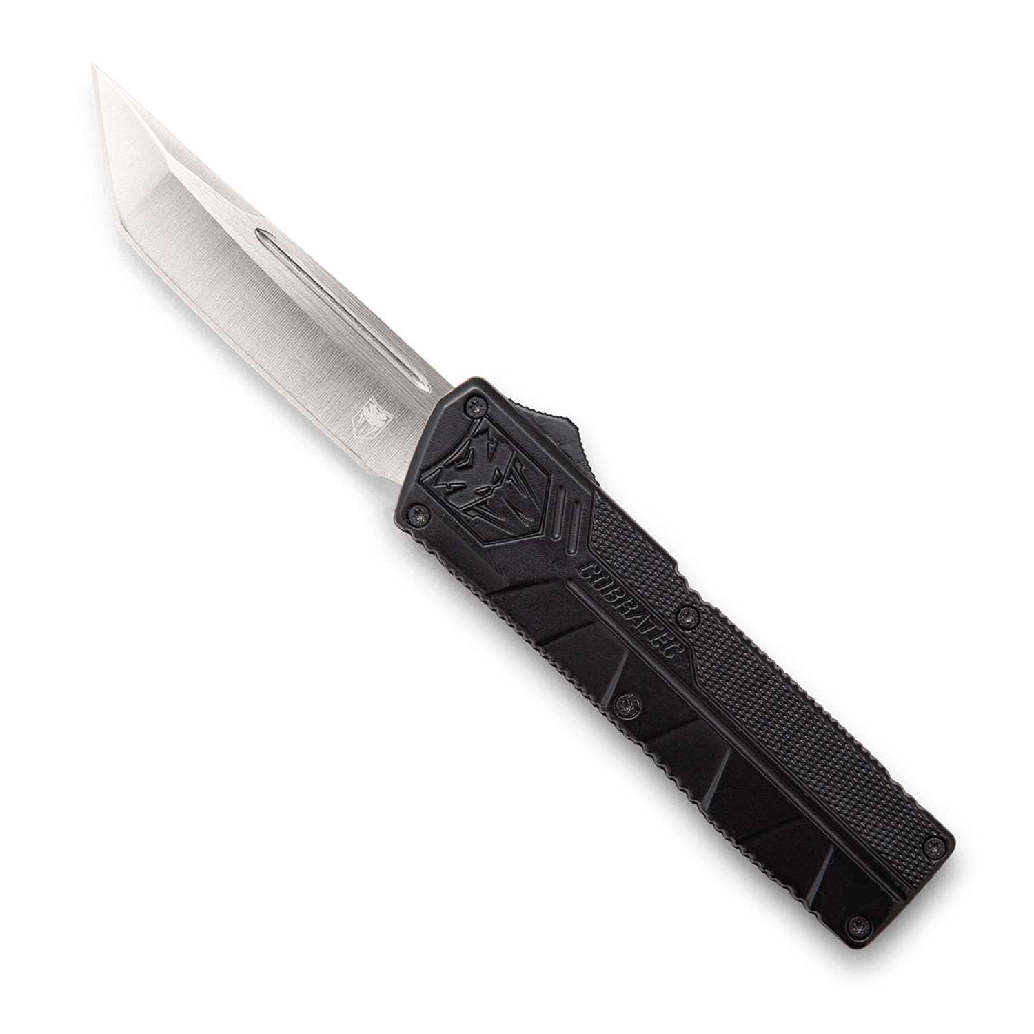 Introducing the Lightweight Black OTF (out the front) knife. With a great feel and excellent action, it's suited for everyday usage. This knife features a pocket clip and a nylon sheath. It also features a 3.25" D2 Steel blade, and 4.5" high-grade aluminum alloy handle, and it is dual action OTF (offer the front).