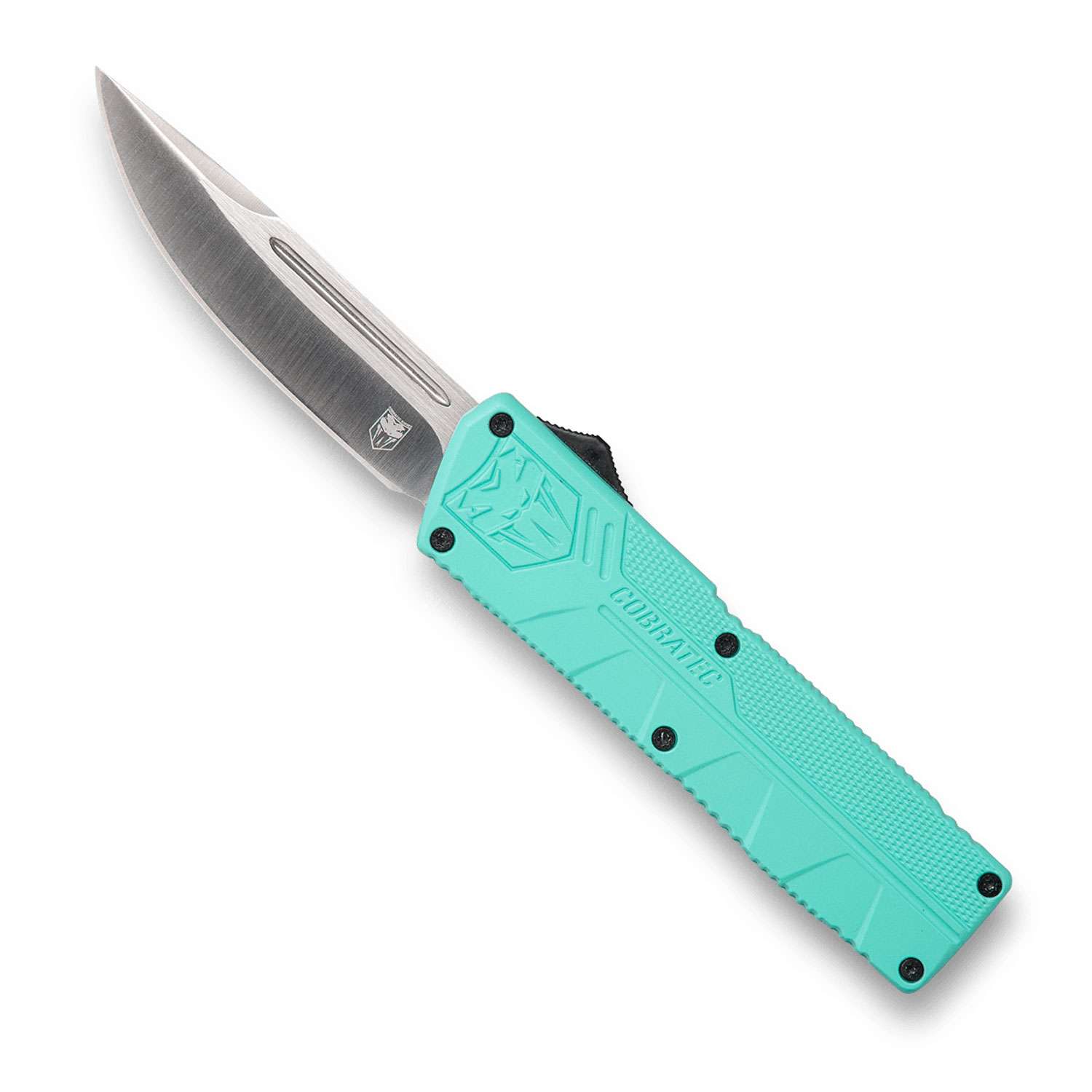 Introducing the Lightweight Tiffany Blue (out the front) knife. With a great feel and excellent action, it's suited for everyday usage. This knife features a pocket clip and a nylon sheath. It also features a 3.25" D2 Steel blade, and 4.5" high-grade aluminum alloy handle, and it is dual action OTF (offer the front).