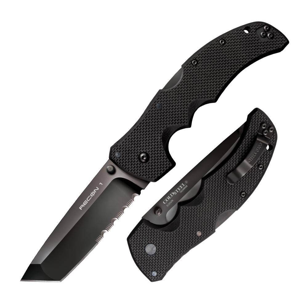 Cold Steel Recon 1, Folding Knife, AUS 8A/Black Teflon, Combo, Tanto Point, Thumb Stud/Pocket Clip, 4", XHP Steel, Box 27BTH