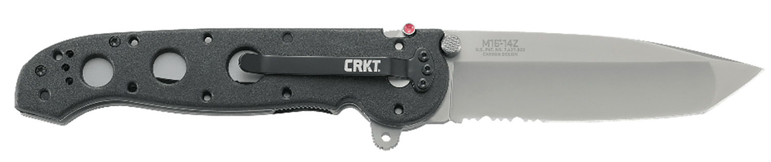 Columbia River Knife & Tool M16, Zytel, 3.875" Folding Knife, Tanto Point, Combo Edge, AUS 4/Bead Blast, Black Zytel, Dual Thumb Stud/Flipper/Pocket Clip M16-14Z