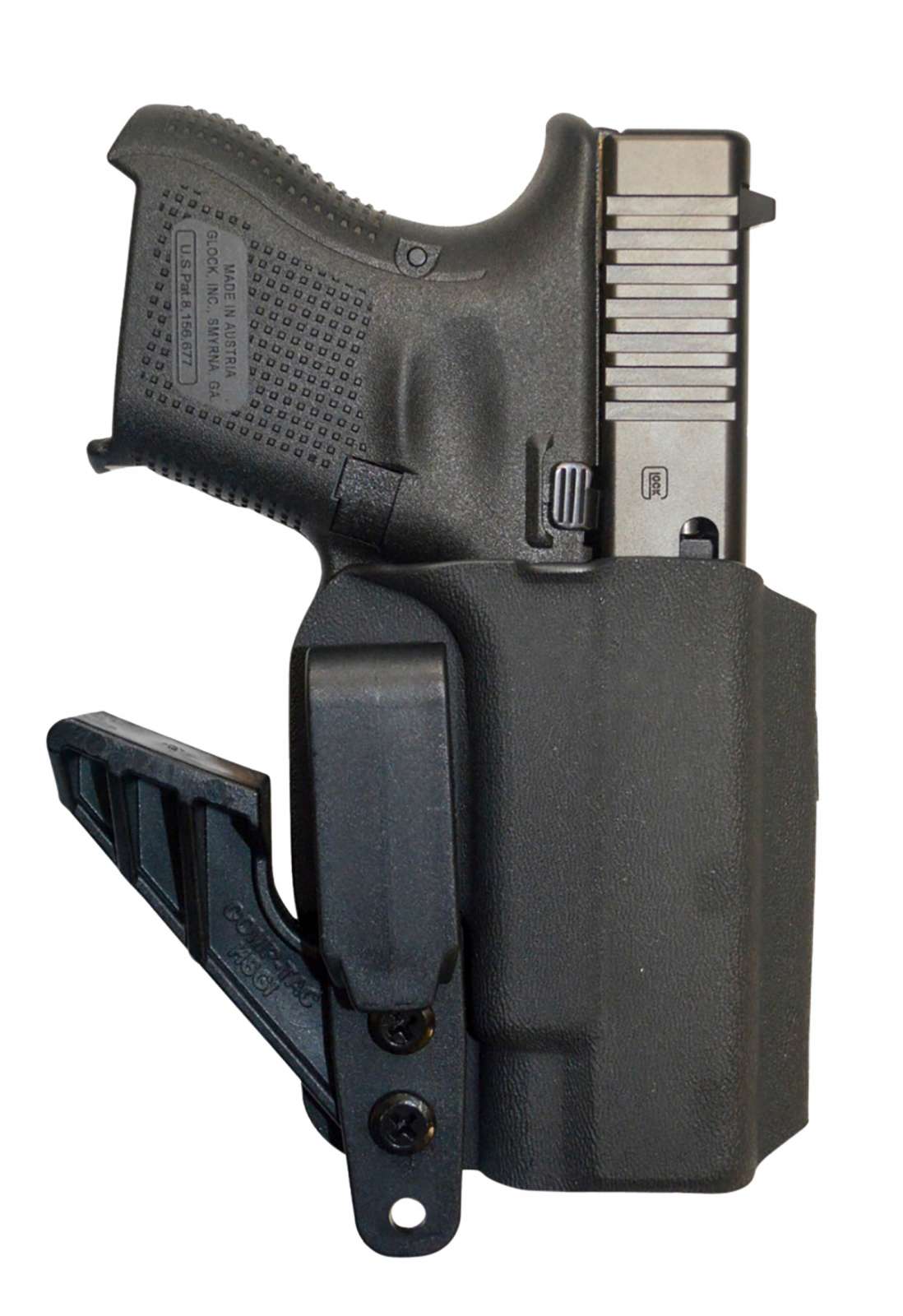 The eV2 Holster is designed for easy as well as deep concealment in the Appendix Inside the Waistband (AIWB) position. The eV2s holster body is made of 100% aircraft-grade Kydex which provides the smoothest finish for an easy, fast draw. The eV2 is attached to your belt with a Tuckable Nylon clip that is gentle on belts and clothing while still being strong and gripping the belt tightly. In addition to the mounting clip, the eV2 is outfitted with a Comp-Tac KICK. This kick is attached to the holster and provides pressure against the belt causing the grip to be pushed into the body causing less printing and a more concealable holster. With smooth edges and minimalist design, the eV2 will keep your handgun close, with no one being the wiser.