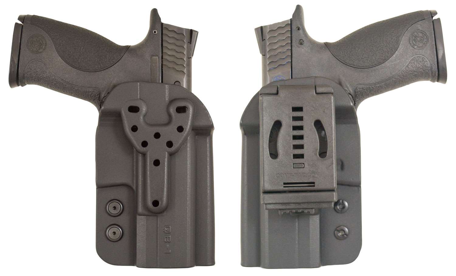 The QB is an outside the waistband holster perfect for general range use, competition or concealed carry. The QB has a quick on and off attachment and will work in any competitive shooting sport.The all Kydex body provides a rigid material that is custom fit to each firearm and maintains its shape even with the pistol un-holstered. The open ended body allows use of firearms of varying lengths.The dual sided multi option mounting block allows user to wear left or right handed. The mount holes are compatible with all industry mounting options for belt, molle or thigh holsters. The holster accommodates up to .5 high night sights, suppressor sights and rear sight mounted optics. It has a push-button mount for fast, simple attachment to belts, easy to adjust belt width, locking button for worry free security and multiple holes for 270 cant adjustment This holster is approved for use in all competitive shooting sports: USPSA, IDPA, 3 Gun.