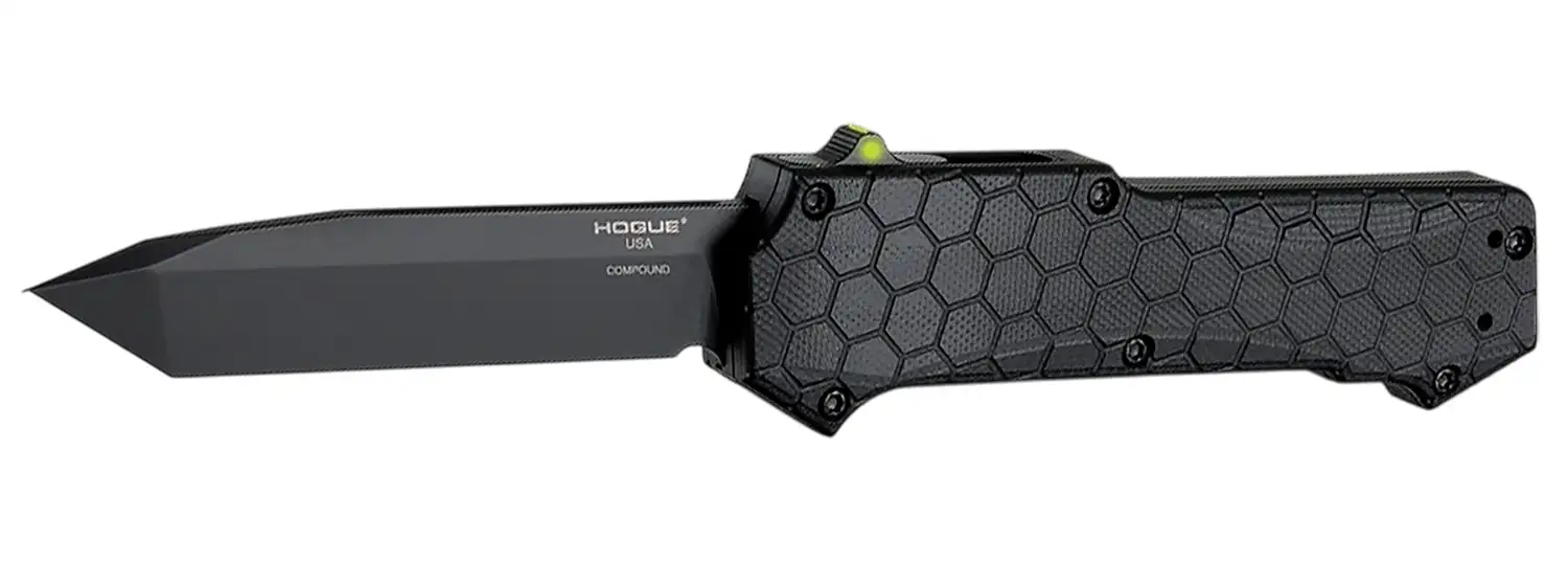 Compound 3.5" Tanto Black/Plain Edge, Tritium Switch, Solid Black G10 frame; double action Out the front S30V Steel