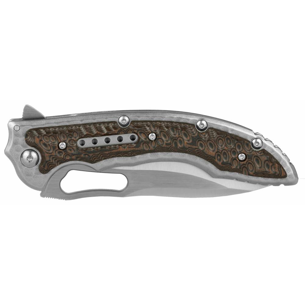 Columbia River Knife & Tool Fossil Folding Knife, 3.96" Blade, Plain Edge, Stainless Steel w/G10 Overlay, 8Cr13MoV/Satin Finish, Frame Lock 5470