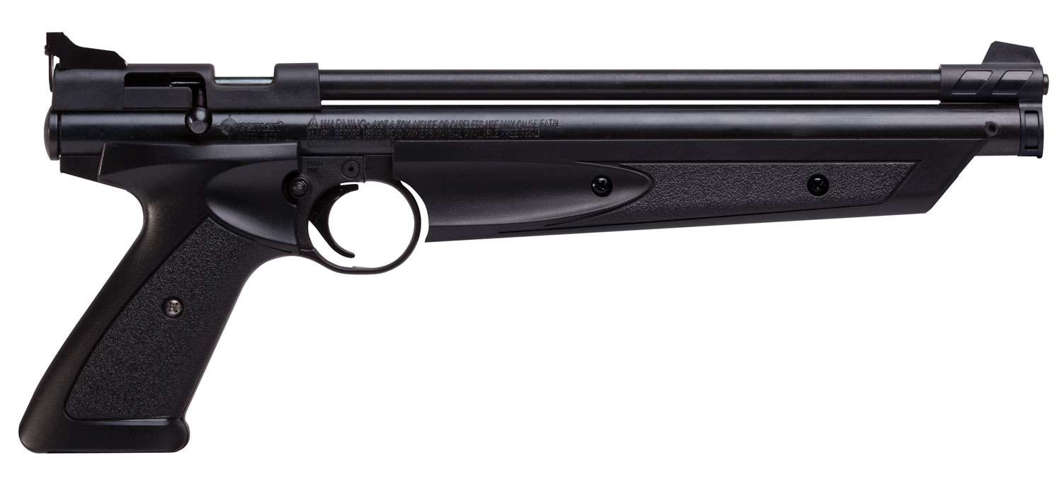 The Classic American Pump Pistol features a sleek and modern design. This pneumatic air pistol has a single-action bolt design for easier cocking and loading, a rifled steel barrel for accuracy, and an easy-pump forearm for variable pump power allowing the user to control the velocity for whatever shooting you are doing. The Classic American Pump Pistol features a single-action bolt design for easier cocking and loading, a rifled steel .177 caliber barrel for accuracy, and an easy-pump forearm for variable pump power. It has a fixed blade front sight and a windage-adjustable rear sight designed to use as a notched sight or as a peep sight.