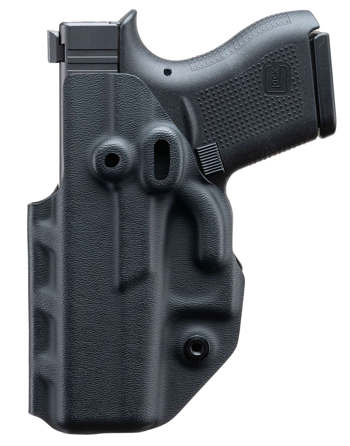 This holster offers ambidextrous carry and a full range of cant adjustment which ensures the user can find their preferred carry position. Constructed with .080 KYDEX, the holster delivers the perfect blend of rugged durability and thin, low profile design required for EDC IWB use. The proprietary clip is made of a high strength polymer that can be used on a variety of clothing styles, so no occasion or attire impedes ones ability to carry. Concealment is enhanced by the subtle Trigger Bump which helps angle the grip of the pistol back towards the body in all carry positions. All COVERT series holsters feature optic compatibility and user-adjustable retention.