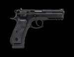 The CZ-USA CZ 75 SP01 is a 9mm pistol with a 4.6 inch barrel that enables the user to make precision shots while the 18+1 round capacity gives you plenty of ammo on hand. This gun also features high visibility night sights, giving you an edge in low light situations. It includes ergonomic grips for comfortable handling, a 3 dot sighting system for increased accuracy and a manual safety for added security. The hammer forged frame and slide have been tested to provide years of reliable use, making this an ideal choice for any shooter. Whether you're looking for a top notch pistol to take to the range or something to keep close by in case of an emergency, the CZ 75 SP01 is designed to meet your needs.
