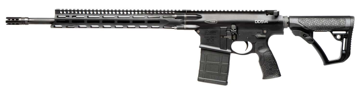 The DD5 V4, chambered in 7.62x51mm NATO, provides users of the Daniel Defense semi-automatic platform even greater long-range precision shooting capability. This rifle includes an adjustable gas block that allows for a consistent feel whether shooting suppressed or unsuppressed. The DLC Coated bolt carrier group reduces overall recoil impulse and is easy to maintain and operate in all conditions. The 4-Bolt Connection System to ensures greater accuracy, GRIP-N-RIP independently ambi charging handle with anti-gas features for a better shooting experience. Features an enhanced flared mag well and rear receiver QD swivel attachment point and a Daniel Defense DD5 Rail 15.0. Accepts All SR-25 magazines. Made in the USA. Ships w/o magazine.