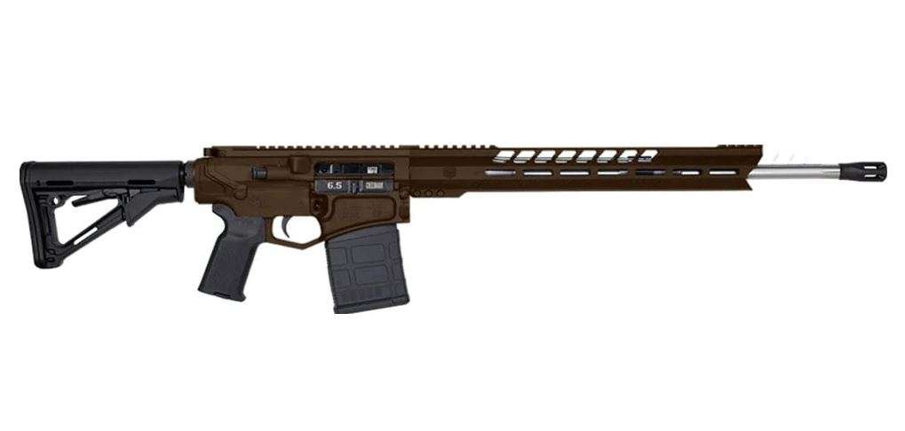 This Diamondback DB10 Rifle features a mid-length, medium 416 stainless steel fluted barrel, mid-length gas system and a shot-peened Mil-Spec 8620 bolt carrier. It utilizes 7075-T6 aluminum receivers, 15" M-Lok handguard, Magpul MOE-K2 grip, and a Magpul CTR stock. This model has a Diamondback Black Gold lower receiver. It also comes with one 20-round mag and one 5-round mag.