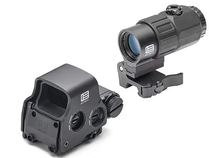 EOTECH HHS IX, Holographic Sight and Magnifier, Red DCR Reticle, 68 MOA Outer Reticle with 1 MOA Dot Reticle, Night Vision Compatible, Quick Disconnect Mounts, Switch-to-Side Magnifier Mount, Side Buttons, Includes G45 5X Magnifier, Matte Finish, Black HHS IX