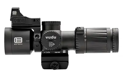 EOTECH Vudu, Rifle Scope, 4-12X Magnification, 36mm Objective, First Focal Plane, Compatible with Mini-ACOG Mounts, MD5 Illuminated MRAD Reticle, Matte Finish, Black, Includes EFLX 3 MOA Red Dot and Mount VDU4-12PKG2