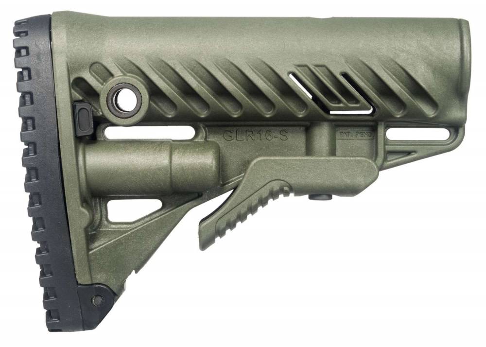 The GLR-16 Buttstock for your AR15/M16 provides you with enhanced versatility with it's stock extension and uniquely designed rubber butt pad for fast and stable shoulder positioning. Its unique patented "Anti-Rattle" mechanism, fits perfectly on MIL-SPEC and commercial after-market buffer tubes. Made from fiberglass reinforced polymer composite, the stock features three integrated slots for sling attachment, one in the front and two at the rear and water-resistant anti rattle storage compartment for two CR123 or AA batteries. This model has an OD green finish.