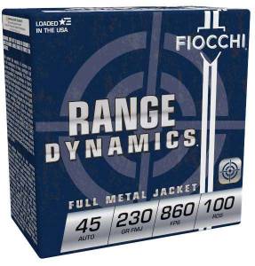 Fiocchi's Range Dynamics is ideal for a day at the local club with family and friends, practicing for your next competition, or headed to a training course to develop your skills. This Range Pack 45ACP load utilizes a 230 grain full metal jacket bullet and comes packaged 100 rounds per box, and 5 boxes per case.