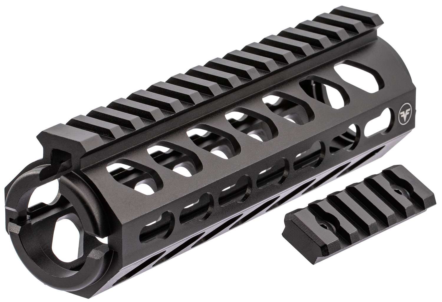 The Firefield Edge Carbine Length 2-Piece Keymod Rail merges an aggressive handguard design with an accessory attachment system robust enough to handle every piece of equipment you need on your next mission. This multipurpose handguard and rail system boasts lightweight yet heavy-duty aircraft-grade 6061-T6 hard-anodized matte black aluminum and a precision-machined design. Its simple 2-piece construction allows the rail to be mounted to any drop-in style rail system using virtually no tools. Includes- Hex key and 5 slot keymond rail piece.