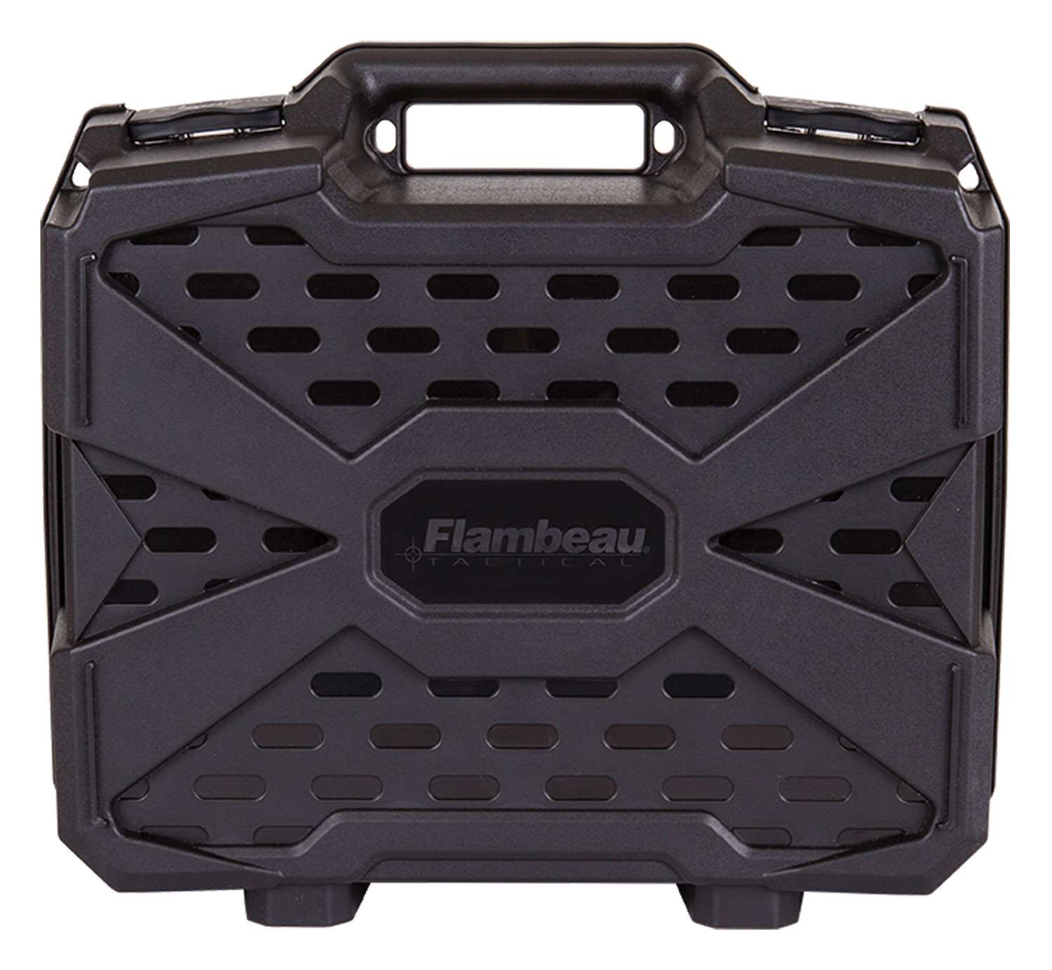 The Tactical Double Deep Pistol Case is designed to protect a quick-access combination of pistols. It is constructed of a rugged polymer with convoluted foam and an integrated handle. The case is proudly made in the U.S.A. and meets TSA and airline safe requirements.This model has a black finish.