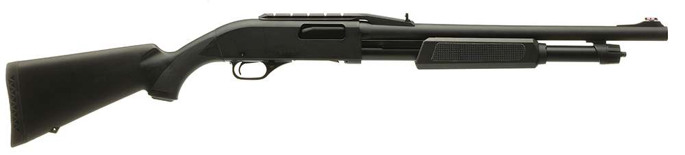 Perfect for home defense, general purpose and recreational shooting, the FN P-12 is the 'do-it-all' tactical shotgun. The FN P-12, assembled in FN's Viana, Portugal facility like the SLP, sports a 5+1 round capacity and premium matte black finish over anodized aluminum. At 18 inches in length, the Belgium-made cantilever barrel is fully chrome-lined for long life and added corrosion resistance. The barrel is factory installed with an Improved Cylinder stainless steel choke tube. Also standard on the FN P-12 are a fiber-optic front sight and flip-up iron sight for rapid target acquisition and precise aiming as well as a Weaver rail for mounting additional optical accessories.