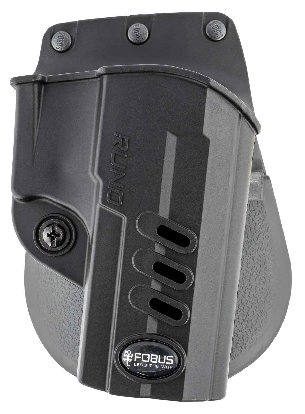 The Evolution series is the next step in the advancement of holster development. A tension adjustment screw is incorporated to allow the user to customize the ease of presentation and the security of retention, functioning with the proven Fobus passive retention design. The E2 series features one piece holster body construction, and like all Fobus holsters, the Evolution, is lightweight and includes steel reinforced rivet attachment and a protective sight channel. The paddle also includes a rubberized insert to provide both comfort and stability.