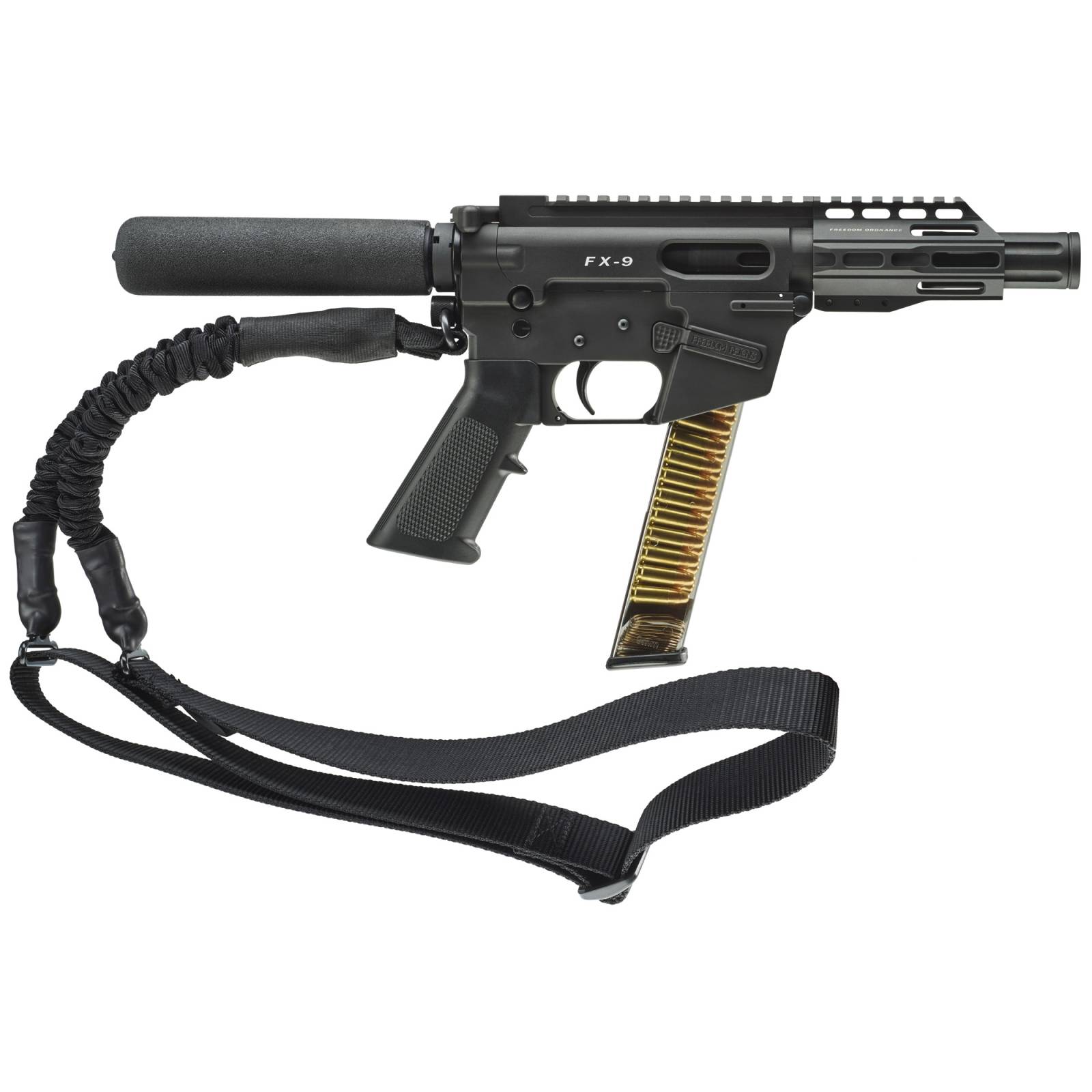 Freedom Ordnance FX9, Semi-automatic, 9MM, 4.5" Barrel, Aluminum Frame, Black Finish, Plastic Grip, Manual Safety, Pistol Buffer Tube, Uses ETS Glock Style Magazines, 31Rd, 1 Magazine FX9P4-T