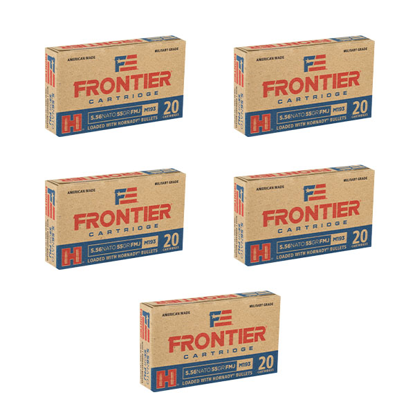 This bundle includes 5 boxes of Hornady .223 55GR FMJ (100 rounds total)