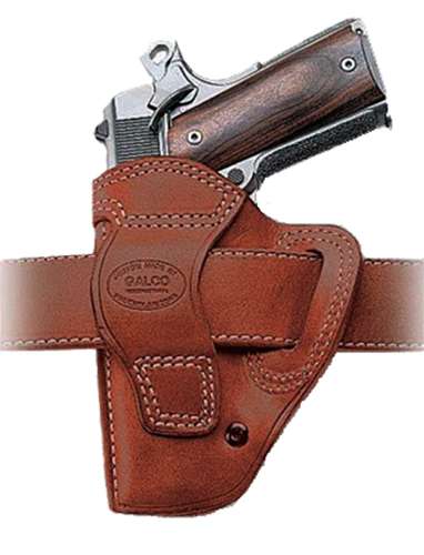 The Galco Avenger combines all the desirable features of a practical holster. Its full combat grip accessibility allows for an instant shooting grip, the stitched sight rails prevent snags, and the reinforced holster opening provides easy eyes-off re-holstering. The vertical orentation allsow for fast, wrist-locked draw stroke. Included is a tension screw which allows for micro-adjustment of the draw stroke and it is constructed of premium steerhide.