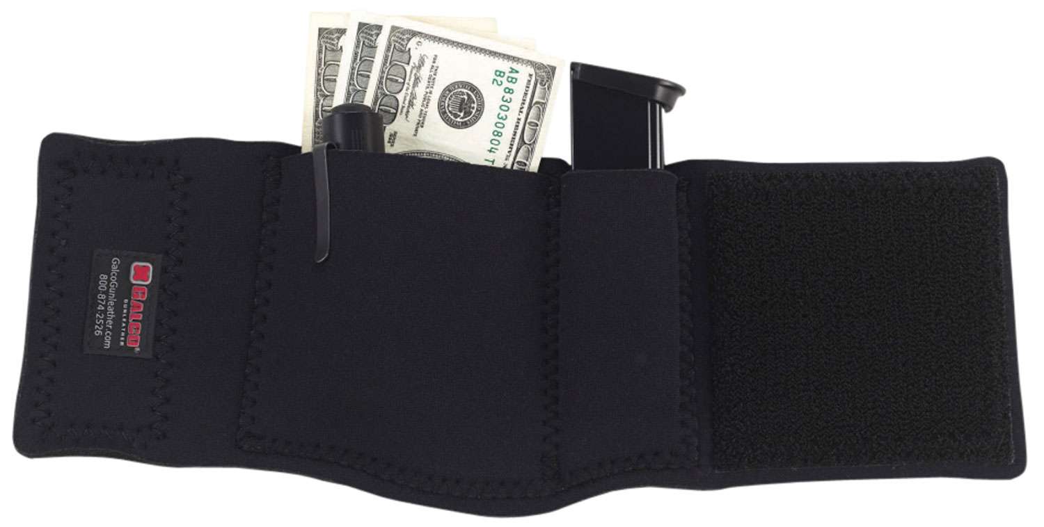The Ankle Safe is designed to carry accessories for those who need convenience and concealment everyday or in traveling. The high grade neoprene band has a Velcro closure and two neoprene pockets. The smaller pocket accommodates a spare magazine or a folding knife, while the larger pocket will hold a wallet, passport, cell phone, handcuffs, or similarly sized items. The Ankle Safe fits ankle circumferences up to 13". The Ankle Safe is an ambidextrous design available in black.