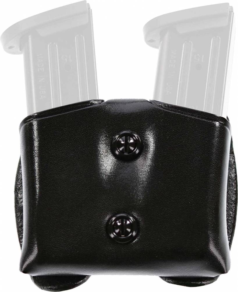 The DMC is an exceptional wrap-around design featuring two one-way snaps on back, allowing it to fasten to your belt vertically. It also includes two tension screw adjustments on front, providing a precision fit.Constructed of premium saddle leather and designed to fit belts 1" - 1 1/4" through belt slots and 1 1/2" - 1 3/4" through the belt channel.