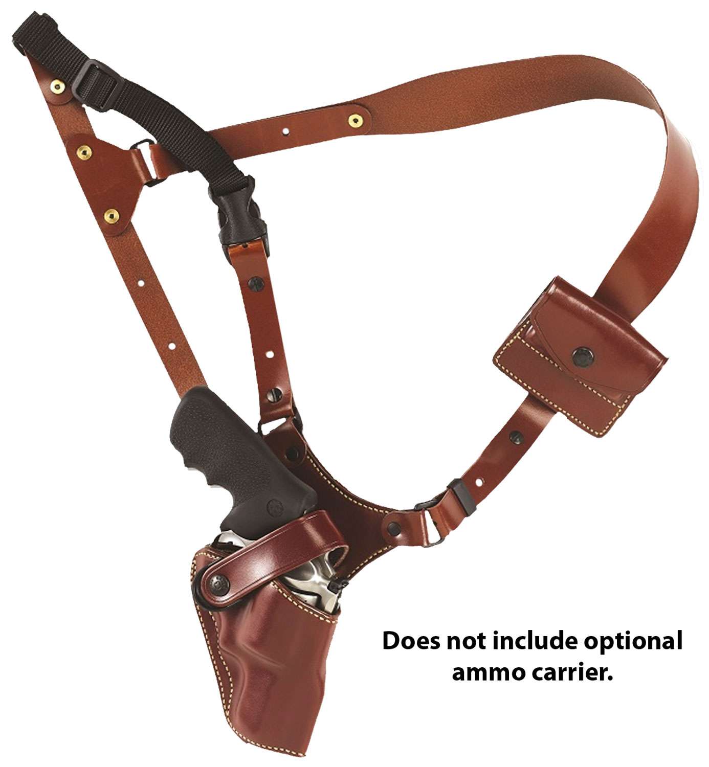 Galco's Great Alaskan shoulder holster system, carries a large-frame revolver or auto in an easily-accessible crossdraw torso position. It is ideal for protection when hunting, fishing, camping or hiking in bear country. Constructed of premium steerhide, the holster component is fully lined with smooth leather.The harness pivots at the holster attachment points for comfort, while its 2" width at the shoulder distributes weight extremely effectively. A Fastex-type buckle facilitates quick donning and removal of the holster system.