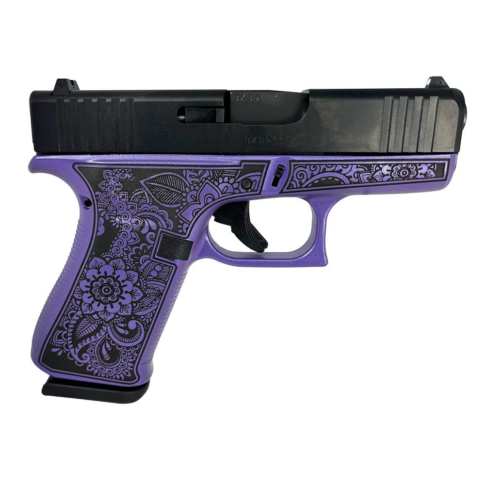 The Glock G43X 9mm 3.41in Barrel 10+1 Round Capacity Mandala/ Pearl Purple is the perfect handgun for concealed carry, offering reliability and comfort. This pistol features an innovative design that offers a crossover between the size of a subcompact and a full-size frame for maximum concealability, accuracy, and ergonomics.