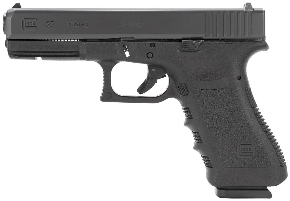 For those who prefer large caliber handguns, the Glock 37, in .45 G.A.P., represents a quantum leap forward in big-bore technology. This ideal, all-around pistol is a winner because it delivers power-packed performance in a standard framed handgun. The G37 is Glock's answer to big bore muzzle flip and high-velocity recoil.